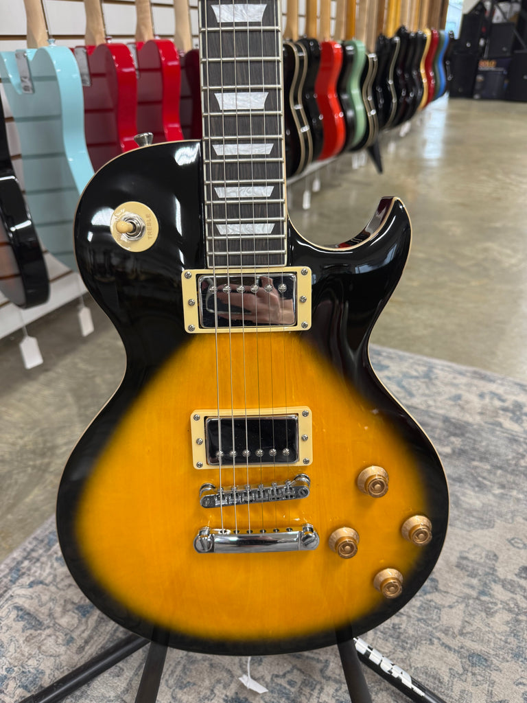Unleash your musical potential with the Austin A6PROTS Single Cutaway Electric Guitar, a perfect blend of style and performance for aspiring musicians. This pre-owned gem is in excellent condition, offering a sleek design that promises to turn heads. Its single cutaway body allows for effortless access to higher frets, making it ideal for both rhythm and lead guitarists. The powerful sound output ensures your music resonates with clarity and depth, whether you're practicing at home or performing on stage. Crafted with precision, this guitar is not only affordable but also a testament to quality, making it a smart choice for those ready to rock without breaking the bank. Embrace your musical journey with the Austin A6PROTS and experience the thrill of playing a guitar that looks as good as it sounds.