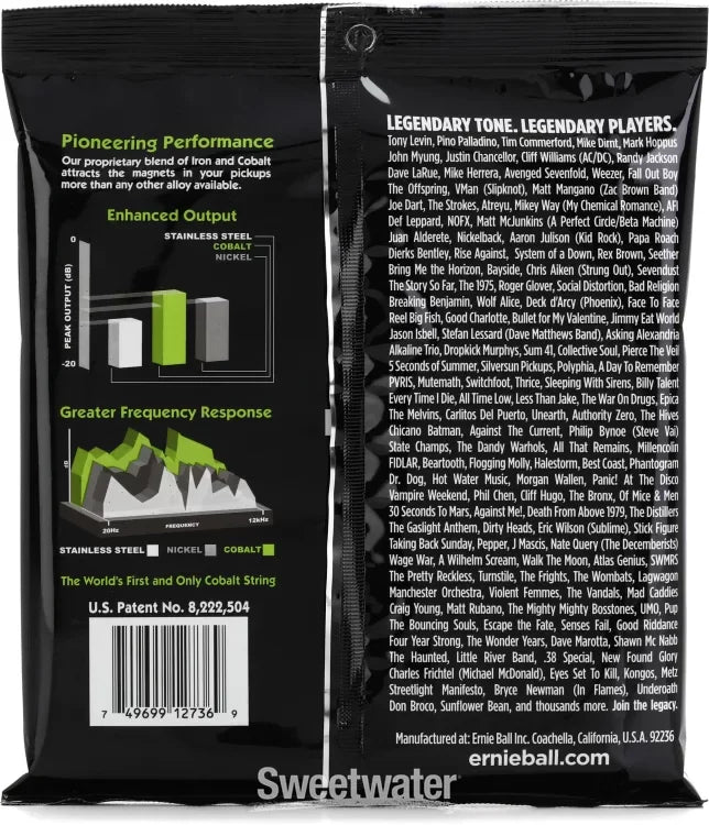 Ernie Ball 2736 Regular Slinky 5-String Cobalt Electric Bass Strings 45-130Ernie Ball Cobalt Slinky Electric Bass Strings are engineered to maximize output and clarity. These strings provide an extended dynamic range, incredible harmonic response, increased low end, and crisp, clear highs. Cobalt Slinky strings produce a stronger magnetic response with pickups than any other alloy previously available. Cobalt Slinky bass strings are also wound for added flexibility, making string bending a breeze. Gauges .045, .065, .080, .100, .130