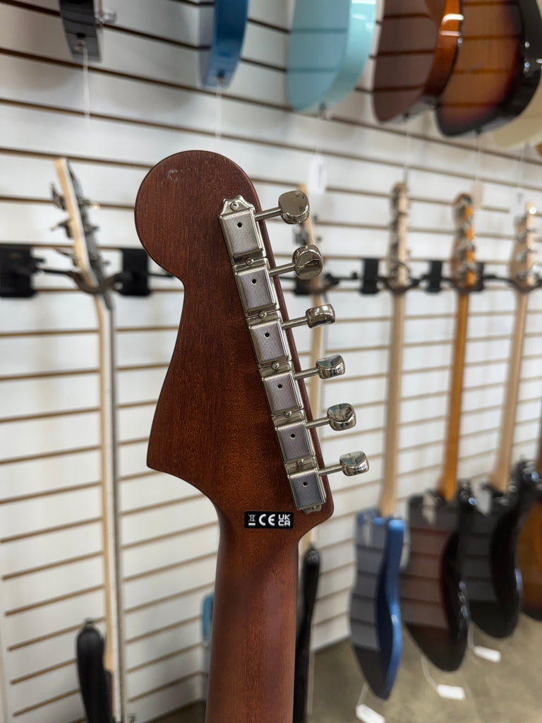 Inspired by the iconic designs of Fender electric guitars, California Player acoustics evoke the west coast spirit of adventure and freedom, inviting musicians to explore their individual creativity and disrupt the status quo.Crafted with an X-braced solid spruce top and sapele back and sides, the compact parlor-sized body of the Malibu Player produces a sweet, articulate voice that encourages players to reach for new chords and melodies. The nato neck is designed with an easy-to-play slim "C"-shaped profile, a short 24" scale length, and a tilt-back 6-in-line headstock for a distinctive look born from Fender's electric guitar DNA. Other notable details include vintage-style tuning machines for smooth, accurate tuning, a GraphTech® NuBone® nut and saddle for detailed harmonic character. With elegantly integrated controls for a sleek, modern look, the onboard Fishman® Flex preamp system allows faithful reproduction of the guitar's natural sound when plugged into an amplifier or recording device.Bold, eye-catching and unique, California Series instruments make no compromises, balancing effortless playability, superior sound, and standout style for those who aspire to play something different.