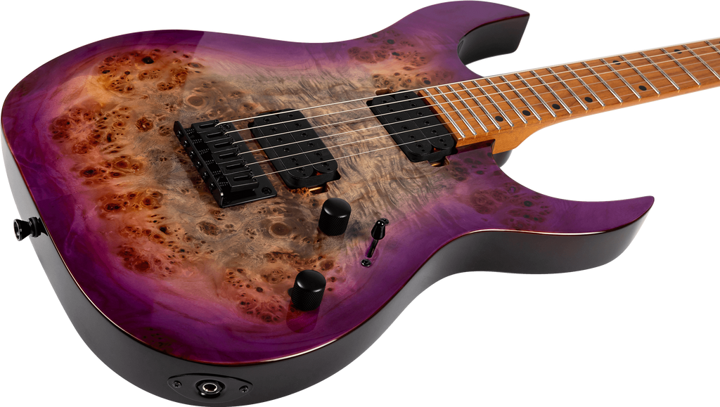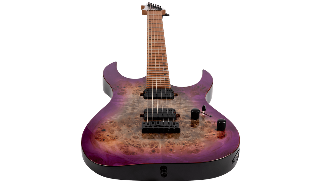 A high-performance rock weapon the S-450 is meticulously crafted for players who demand exceptional tone and spectacular visual appeal. The S-450 features a roasted poplar body combined with stunning gloss maple or spalted poplar tops. Its Canadian roasted maple neck with a modern D shape and matching roasted maple fretboard offers a smooth, fast playing experience, perfect for intricate solos and heavy riffs.