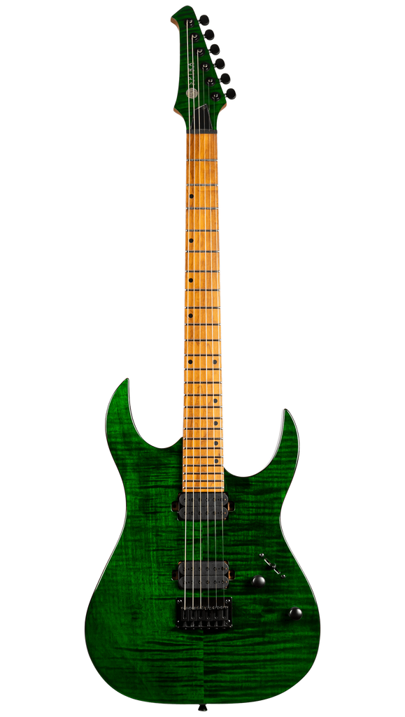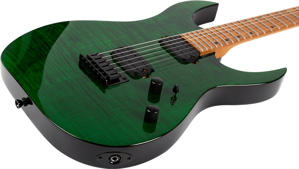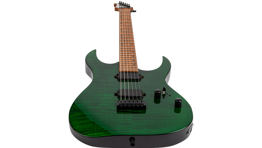A high-performance rock weapon the S-450 is meticulously crafted for players who demand exceptional tone and spectacular visual appeal. The S-450 features a roasted poplar body combined with stunning gloss maple or spalted poplar tops. Its Canadian roasted maple neck with a modern D shape and matching roasted maple fretboard offers a smooth, fast playing experience, perfect for intricate solos and heavy riffs.