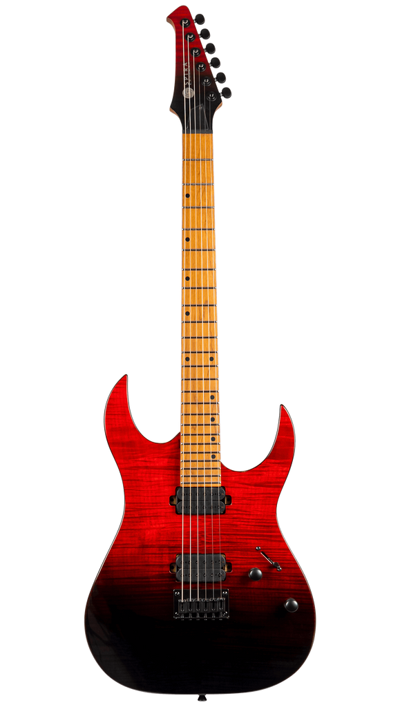 A high-performance rock weapon the S-450 is meticulously crafted for players who demand exceptional tone and spectacular visual appeal. The S-450 features a roasted poplar body combined with stunning gloss maple or spalted poplar tops. Its Canadian roasted maple neck with a modern D shape and matching roasted maple fretboard offers a smooth, fast playing experience, perfect for intricate solos and heavy riffs.