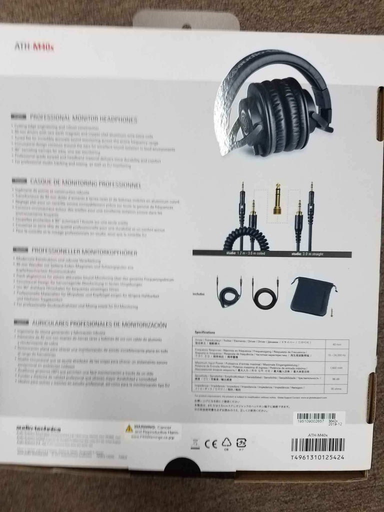 The M-Series ATH-M40x professional monitor headphones are tuned flat for incredibly accurate audio monitoring across an extended frequency range. Your studio experience is enhanced with superior sound isolation and swiveling earcups for convenient one-ear monitoring. Engineered with pro-grade materials and robust construction, the M40x excels in professional studio tracking and mixing, as well as DJ monitoring.More About the M-Series HeadphonesCritically acclaimed M-Series professional monitor headphones deliver accurate audio and outstanding comfort, perfect for long sessions in the studio and on the go. Contoured earcups seal tight for excellent sound isolation, with minimal bleed. And the pro-grade materials are durable, yet comfortable. Find out why online reviewers, top audio engineers, and cult followers agree, M-Series is an unmatched combination of audio and build-quality that gets the job done. Hour after hour, year after year.