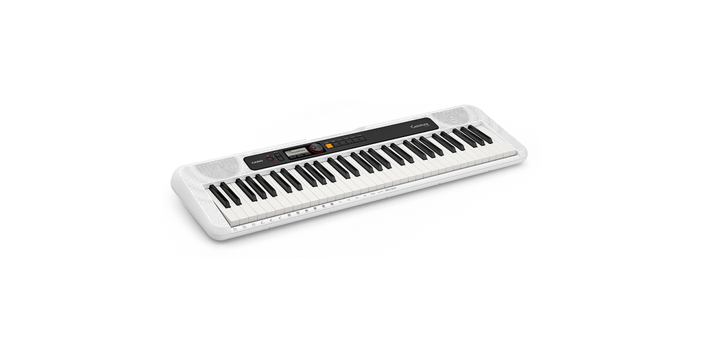 Casio CT-S200WE White Casiotone 61 Key Portable KeyboardMaking Music Fun. Anytime, Anywhere.Available in black, white, or red colors, the ultra-compact CT-S200 lets you make music wherever and whenever you want. Just pop in six AA batteries, grab the built-in carrying handle and take your inspiration to go. *Includes power supply and music rest.