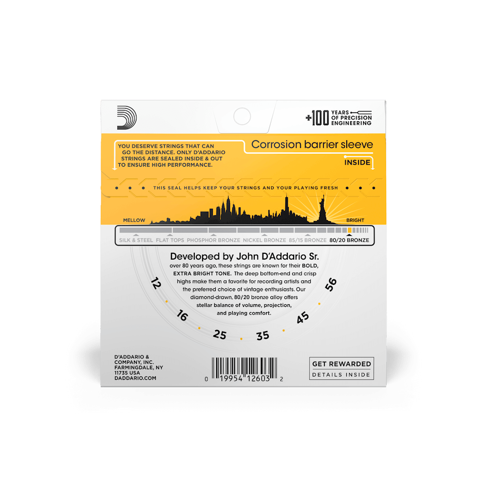 80/20 Bronze was originally created by John D'Addario Sr. and renowned guitar maker John D'Angelico in the 1930s.