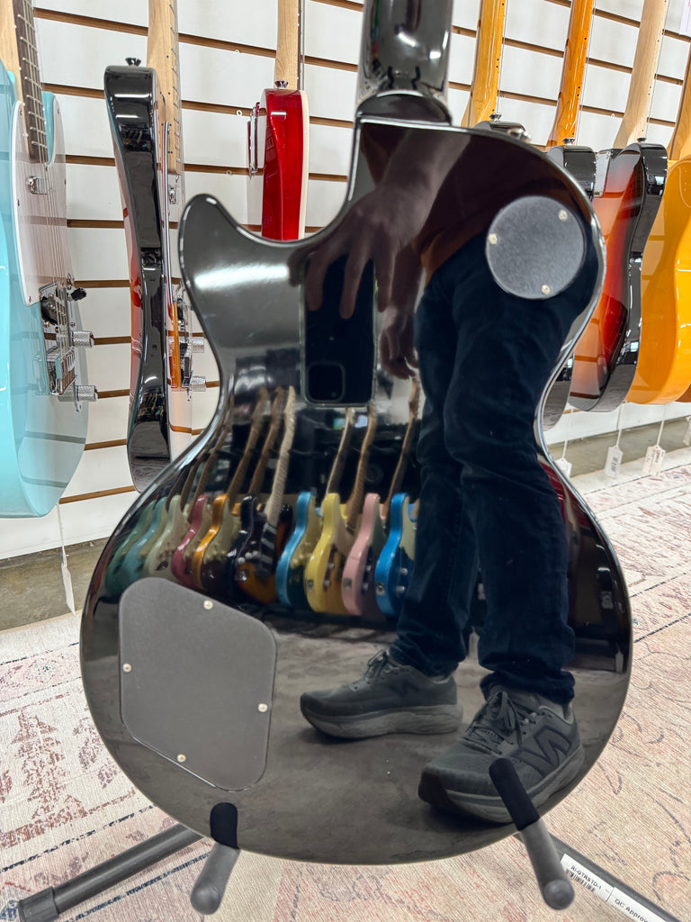 The Epiphone Les Paul Standard in Ebony delivers classic rock tone and iconic styling at an accessible price point. This semi-hollow body electric features a mahogany body with arched maple top, rosewood fretboard, and dual humbucker pickups engineered for warm, articulate output across genres. The set neck construction ensures stable intonation and smooth upper-fret access, while the tune-o-matic bridge and stopbar tailpiece provide reliable tuning stability. A versatile workhorse for players seeking authentic Les Paul character without premium pricing—ideal for intermediate to advanced musicians building their rig.