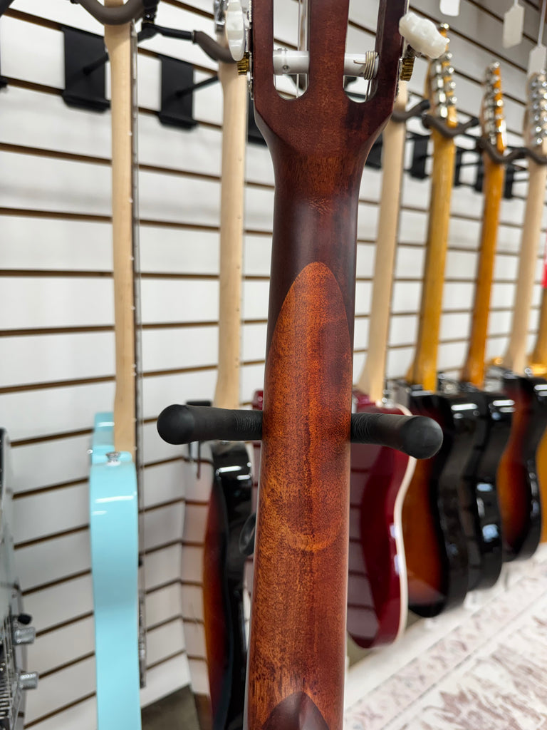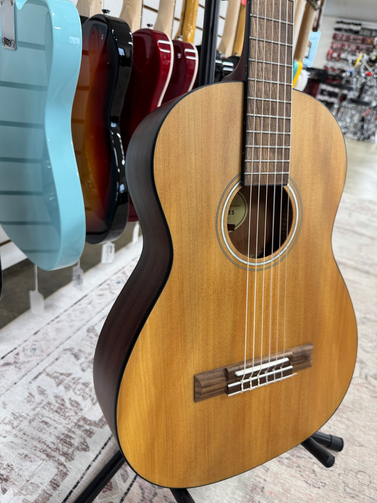 The Fender FA-15N 3/4 Nylon is an excellent entry-level classical guitar built with solid construction and warm, mellow tones. Its smaller 3/4 body makes it ideal for younger players or those with smaller frames, while the nylon strings deliver a gentle, forgiving feel perfect for beginners learning fingerstyle technique. This used model offers exceptional value for budget-conscious musicians seeking authentic Fender quality without the premium price tag. A reliable choice for practice, lessons, or casual playing.