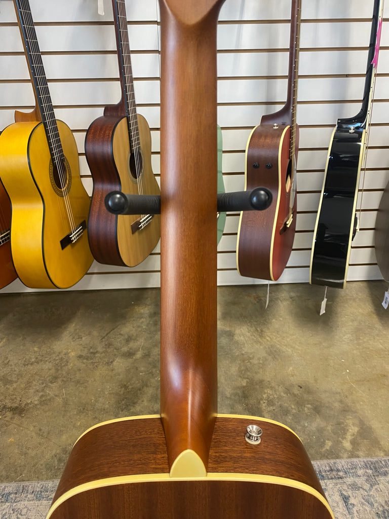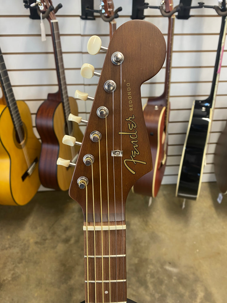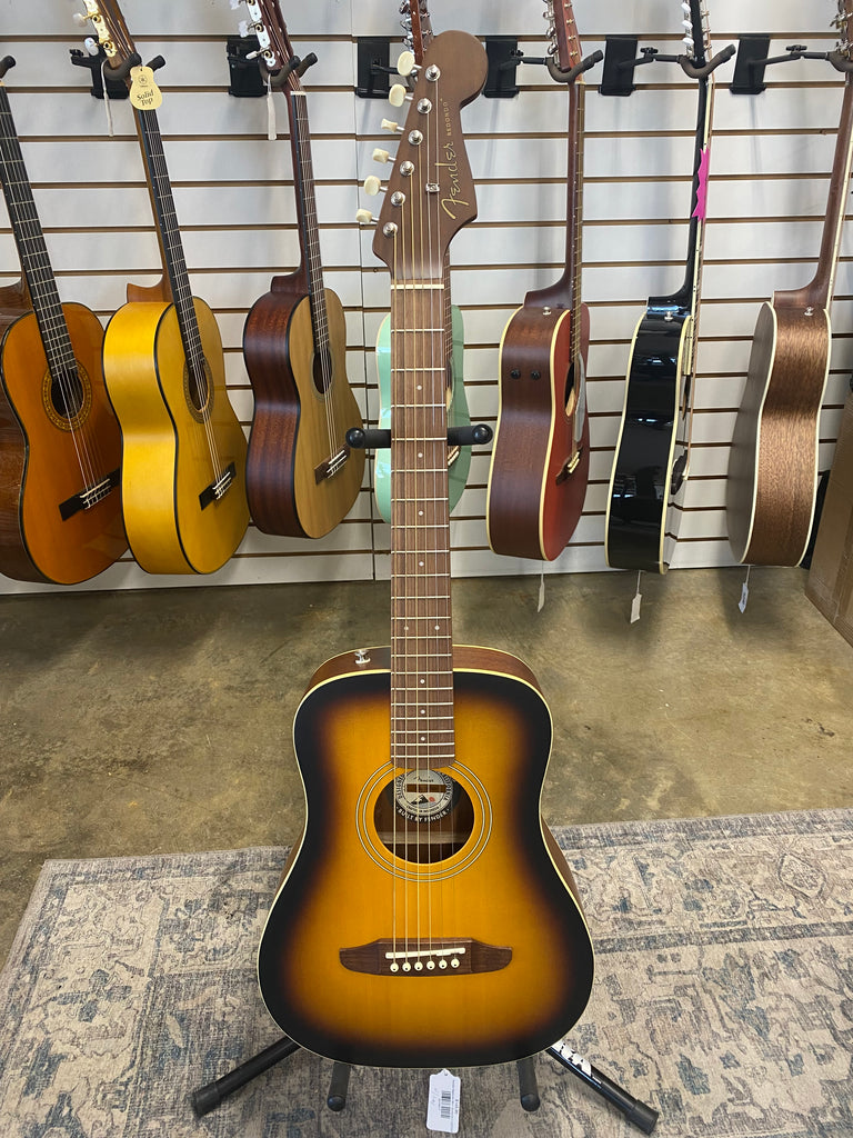 The Fender Redondo Mini delivers authentic acoustic tone in a compact, travel-friendly package. This sunburst finish model features a solid spruce top paired with mahogany back and sides, producing warm, resonant sound ideal for fingerstyle and light strumming. The smaller body size makes it perfect for younger players, travel, or as a secondary instrument without sacrificing tonal quality. As a used example, this guitar offers excellent value for players seeking genuine Fender craftsmanship at an accessible price point.
