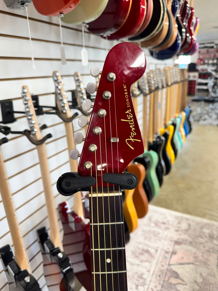The Fender Sonoran SCE in Candy Apple Red delivers warm, balanced acoustic tones with the convenience of built-in electronics. This used model features a solid spruce top paired with mahogany back and sides, producing rich resonance ideal for both studio recording and live performance. The cutaway design grants easy access to upper frets, while the onboard preamp system ensures reliable amplification without feedback. A proven workhorse for intermediate to advanced players seeking vintage character at a practical price point.