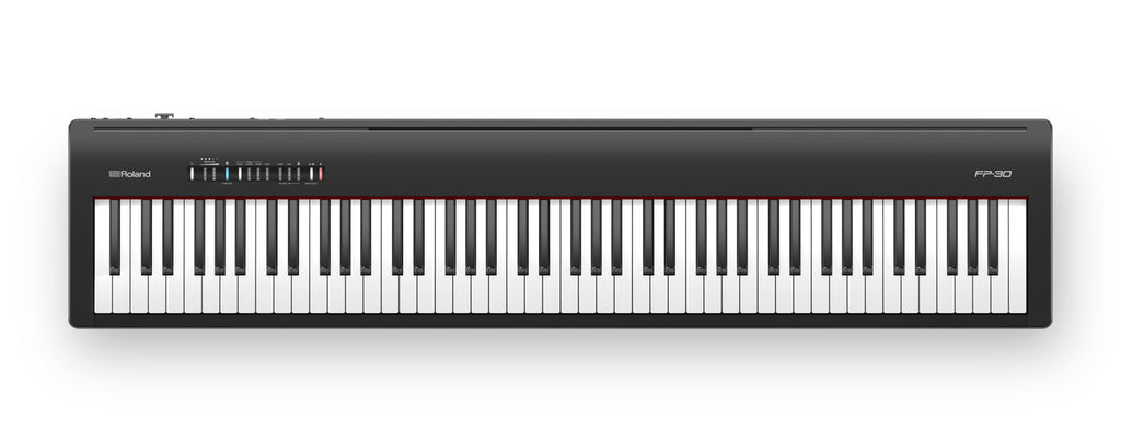 The Roland FP-30 is the portable piano you'll want with you in every musical scenario. From stage and studio to music class and family home, this flexible, feature-packed instrument has already been chosen by 150,000 discerning players - and counting. From a hobbyist's home instrument to a professional's play-anywhere second piano, this model ticks all the boxes, offering Roland's acclaimed sound, feel and modern features in an on-the-move 88-note format. Available in white or black, the Roland FP-30's sleek, elegant styling is a welcome addition to any room. Adding in numerous sounds beyond the piano, built-in practice and recording functions, and Bluetooth&174; wireless support for working with popular music apps, the FP-30 delivers a premium musical experience previously unattainable in such a streamlined package.