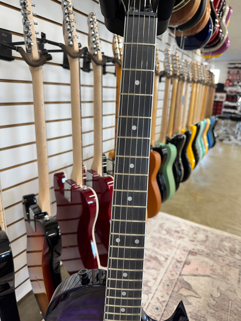 The Jackson JS Series Monarch SC delivers professional-grade performance at an accessible price point. This solidbody electric features a contoured body for superior comfort during extended playing sessions, paired with a responsive neck designed for smooth playability across all frets. The Transparent Purple Burst finish showcases striking visual appeal while the JS22Q configuration includes quality hardware and electronics built to handle both studio work and live performance. Ideal for intermediate to advanced players seeking a versatile instrument that balances tone, playability, and value.