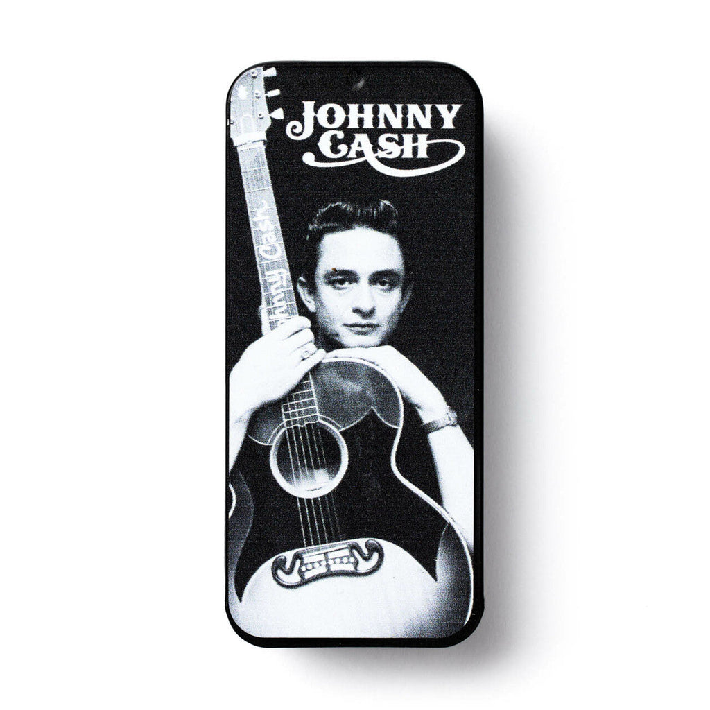 Dunlop JCPT01M Johnny Cash Memphis Medium Pick TinThis Pick Tin includes six medium gauge picks inspired by the legendary Johnny Cash.The Long StorySinger-songwriter and rebel Johnny Cash created his own sound, using his country roots and unmistakable voice with a variety of musical styles, inspiring generations of musicians over 50+ year period he was active.This Pick Tin includes six medium gauge picks inspired by the legend himself.