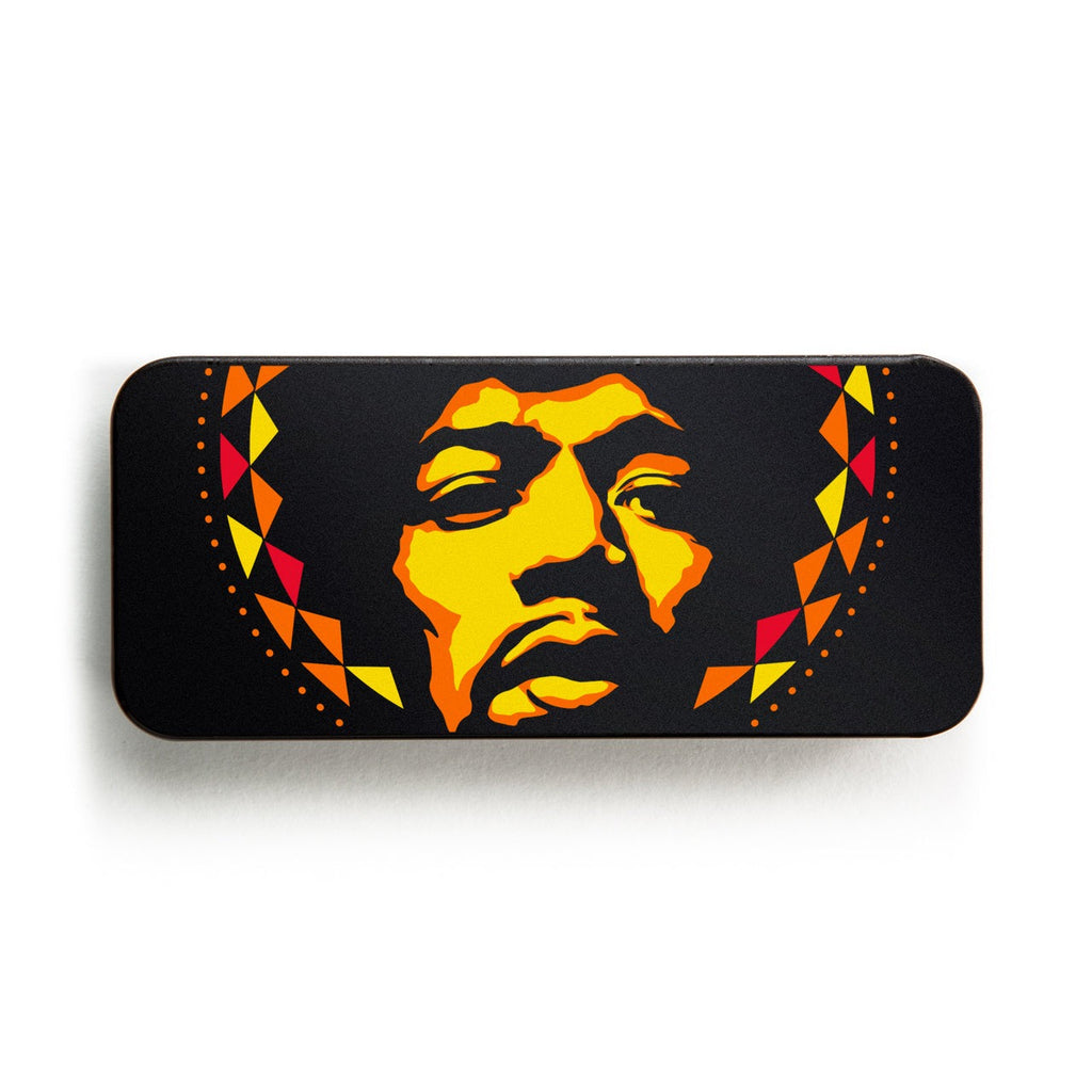 Dunlop JH-PT16 Jimi Hendrix Aura Pick TinFifty years ago, Jimi Hendrix closed out a historic festival with an epic two-hour set that included his famous psychedelic rendition of the national anthem. These pick tins commemorate that momentous event with 6 Genuine Celluloid Picks emblazoned with super trippy artwork from award-winning UK-based design crue ILOVEDUST.
