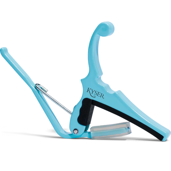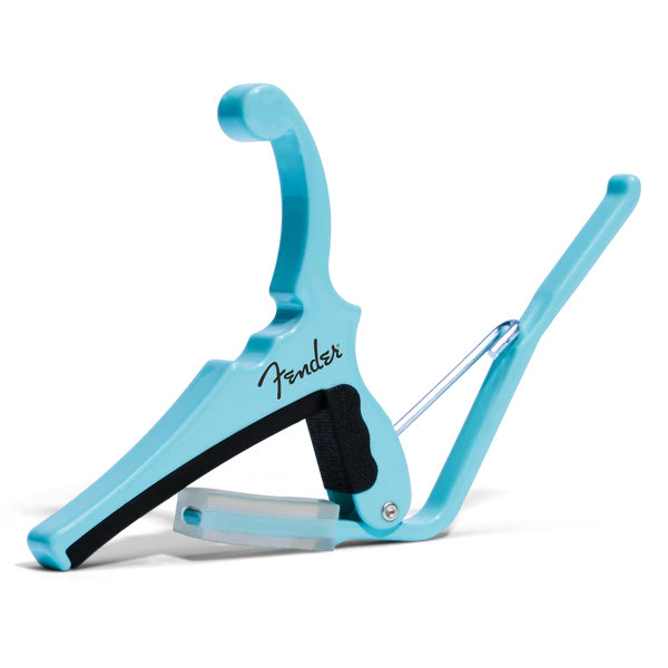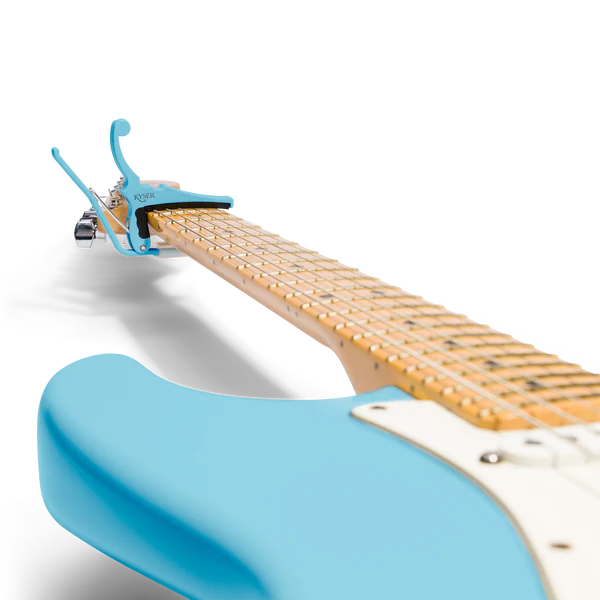 Kyser KGEFDBA Daphne Blue Electric Guitar Capo Quick-ChangeTwo legendary brands. Four legendary finishes.Kyser Musical Products, Inc. has collaborated with Fender Musical Instruments Corp. to launch its new series of "Classic Colors" Quick-Change Electric Guitar Capos. The capos feature Kyser's precision ColorMatch Process along with a newly designed 9.5" radius that has been engineered against numerous fretboards from several electric guitar models to guarantee accurate tension and fit.