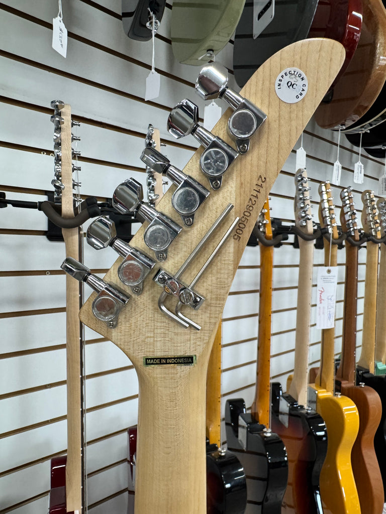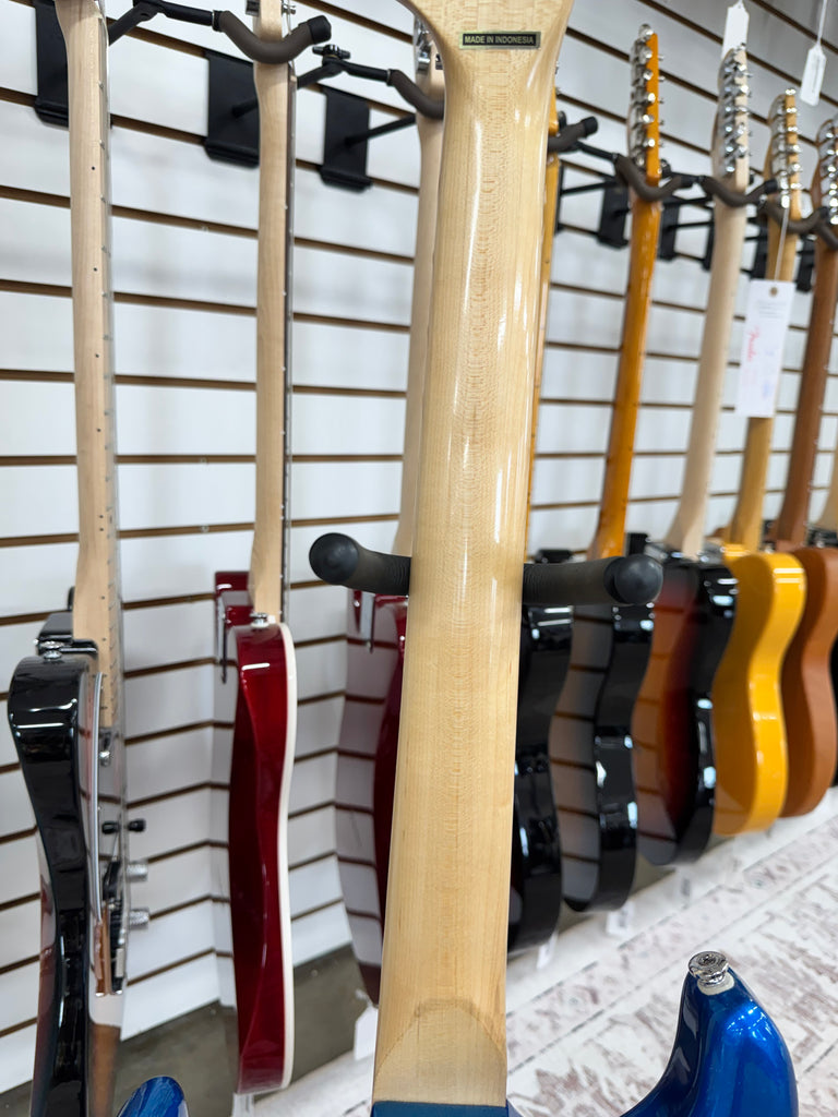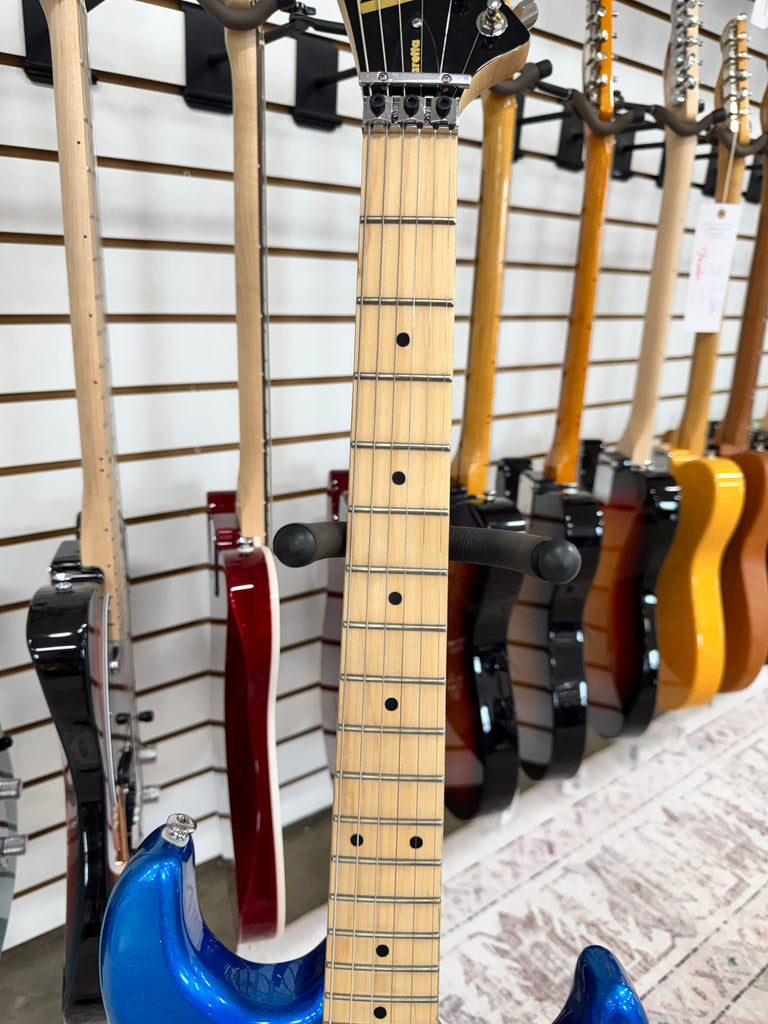 Kramer's Baretta Custom Graphics delivers striking visual appeal with its White Lotus Candy Blue finish—a premium aesthetic that turns heads on stage or in the studio. Built on Kramer's legendary offset body design, this guitar combines bold graphics with solid construction for players seeking distinctive tone and unmistakable style. The Baretta's ergonomic contours and responsive hardware make it equally at home in rock, metal, or alternative settings. Whether you're building a signature rig or upgrading your collection, this custom-graphics model stands out as both a functional instrument and a visual statement.