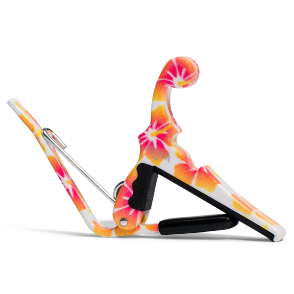 Kyser KUPHA Pastel Hibiscus Ukulele Capo Quick ChangeAbout Kyser Quick-Change Ukulele CapoSay aloha to Kyser Quick-Change Ukulele capos, the fastest way to change keys--and colors. With fashionable, floral-inspired finishes and a one-handed trigger design that's as easy as a day at the beach, Quick-Change Ukulele capos handle the hard part so you can take it easy.Printed patterns and wrap designs may vary from capo to capo.