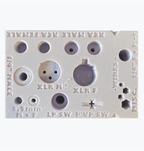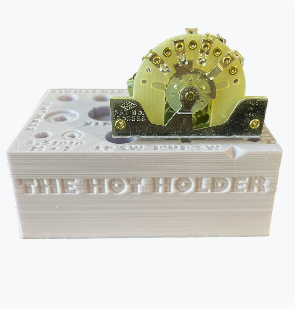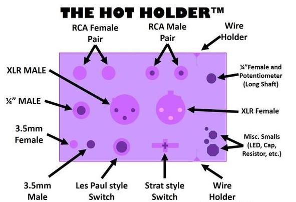 The Hot Holder is a great new tool for all your soldering needs. Made of solid silicone, the Hot Holder functions as a second set of hands gripping the most popular audio connectors, parts, and switches without absorbing heat or scratching your instrument's finish.