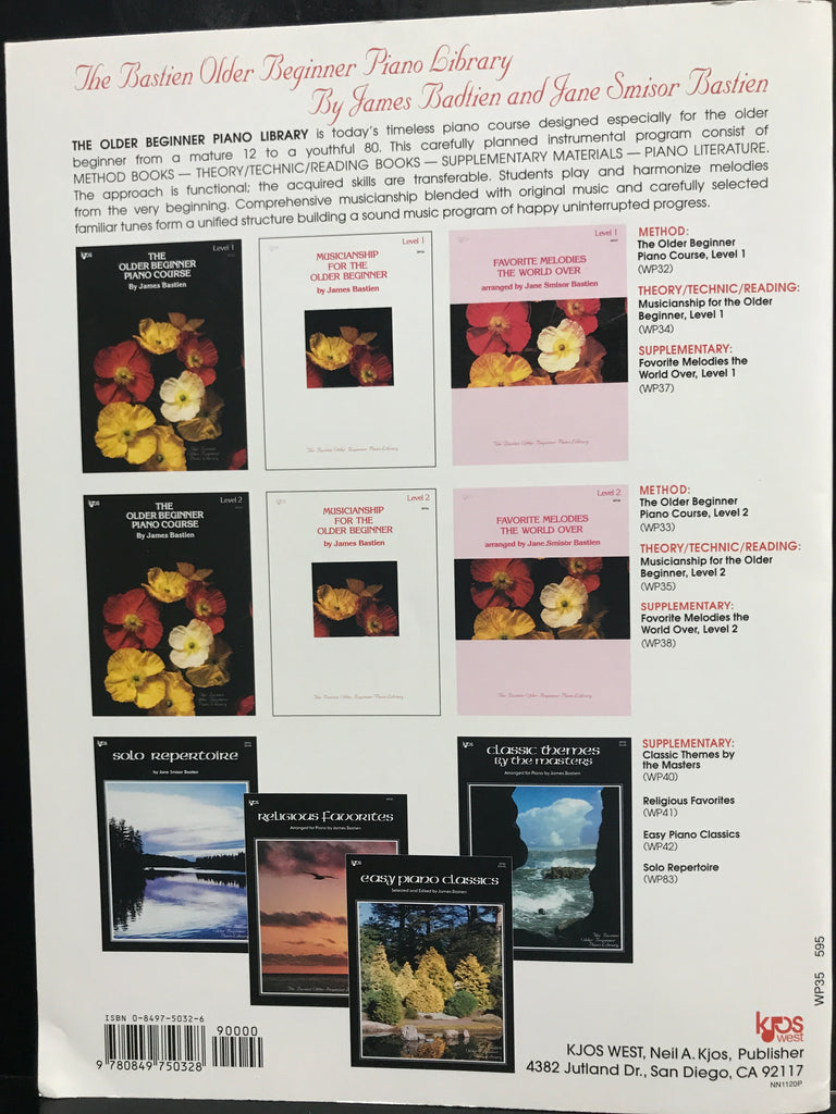 Bastien Musicianship for the Older Beginner Level 2 WP35Each book contains theory, technic, and reading instruction correlated unit-by-unit with the materials in The Older Beginner Piano Course, Levels 1 and 2. Each provides extra reinforcements for the concepts presented in the lesson books.