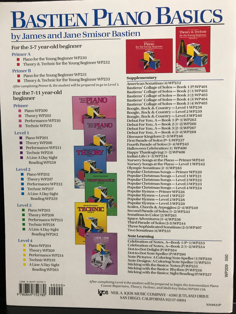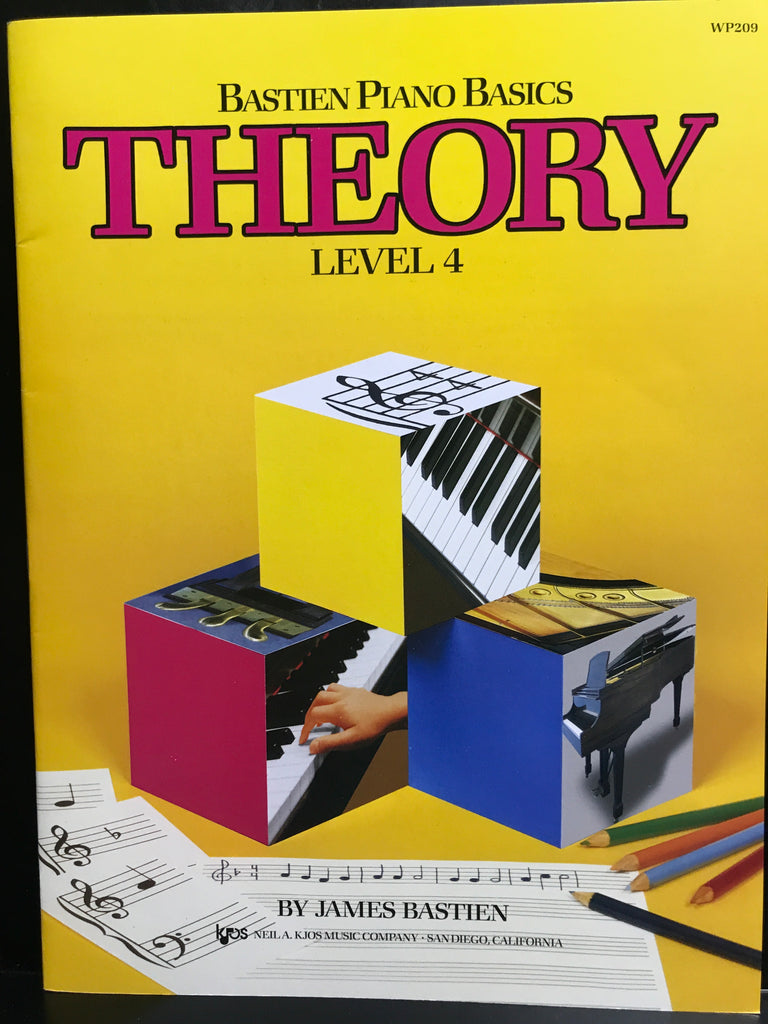 Bastien Piano Basics Theory Level 4 WP209Theory is the theory workbook portion of the Bastien Piano Basics course. Each book contains written work and some short pieces to reinforce the concepts presented in Piano. Games, puzzles, and colorful illustrations make learning fun! Your students will gain a better understanding of the music they are playing, and they will learn more easily when theory instruction is a regular part of their piano studies. Each page is carefully correlated with Piano, Performance, and Technic.Level 4 presents theory material correlated with Piano