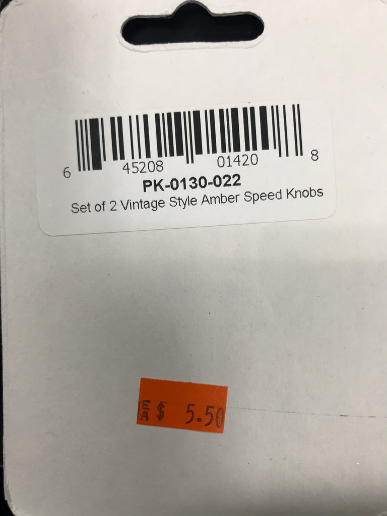 Allparts PK-0130-022 Amber Vintage-style Speed Knobs 1 pairSpeed knobs (2), vintage style numbers, fits USA split shaft pots.