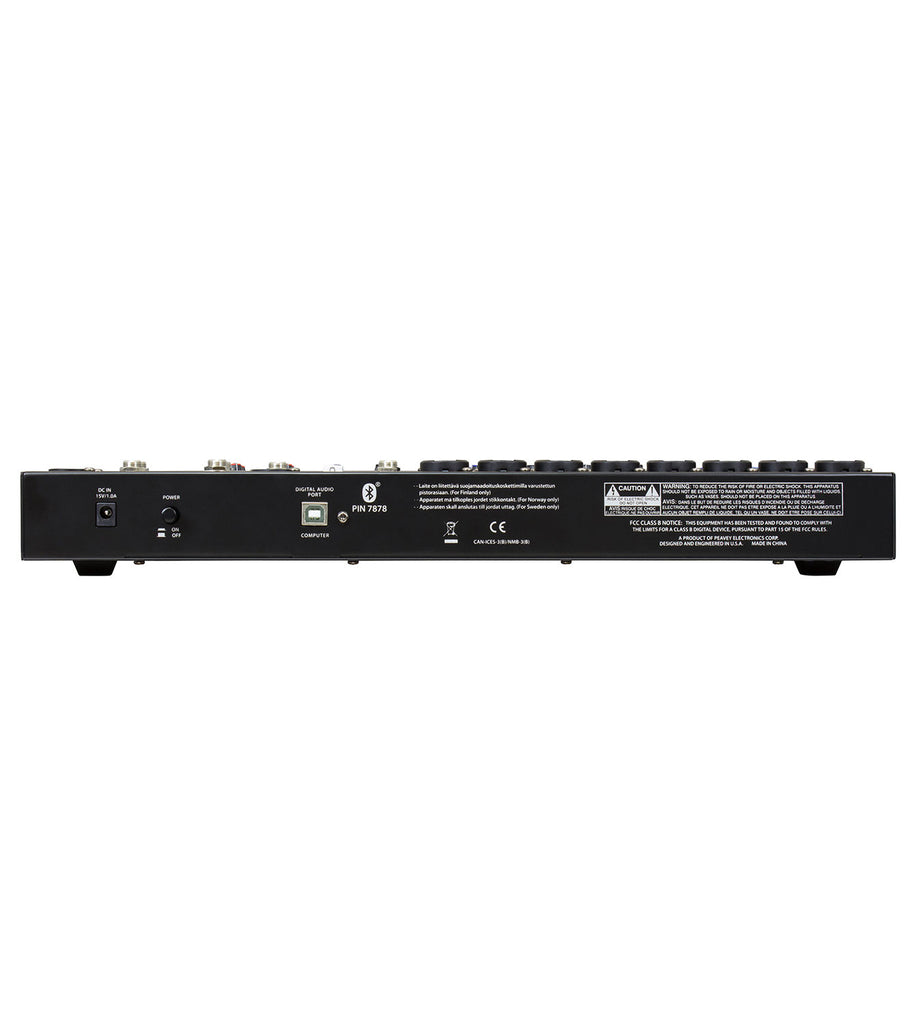 The PV 14 BT includes 8 channels of reference quality mic preamps, 8 direct outputs for recording, a stereo channel, media channel with Bluetooth wireless input, high quality digital effects with LCD display, streaming USB out, MP3 playback via USB A input, Peavey's exclusive Kosmos audio enhancement, 48-volt phantom power, dual selectable control room outputs, 4 channels of compression, one channel of on board selectable guitar preamp, 3-band EQ per channel with bypass, channel mute buttons, aux send, signal clip indicators, and a stereo master LED meter bridge. This amazingly versatile mixer is at home both in the studio as well as live applications.