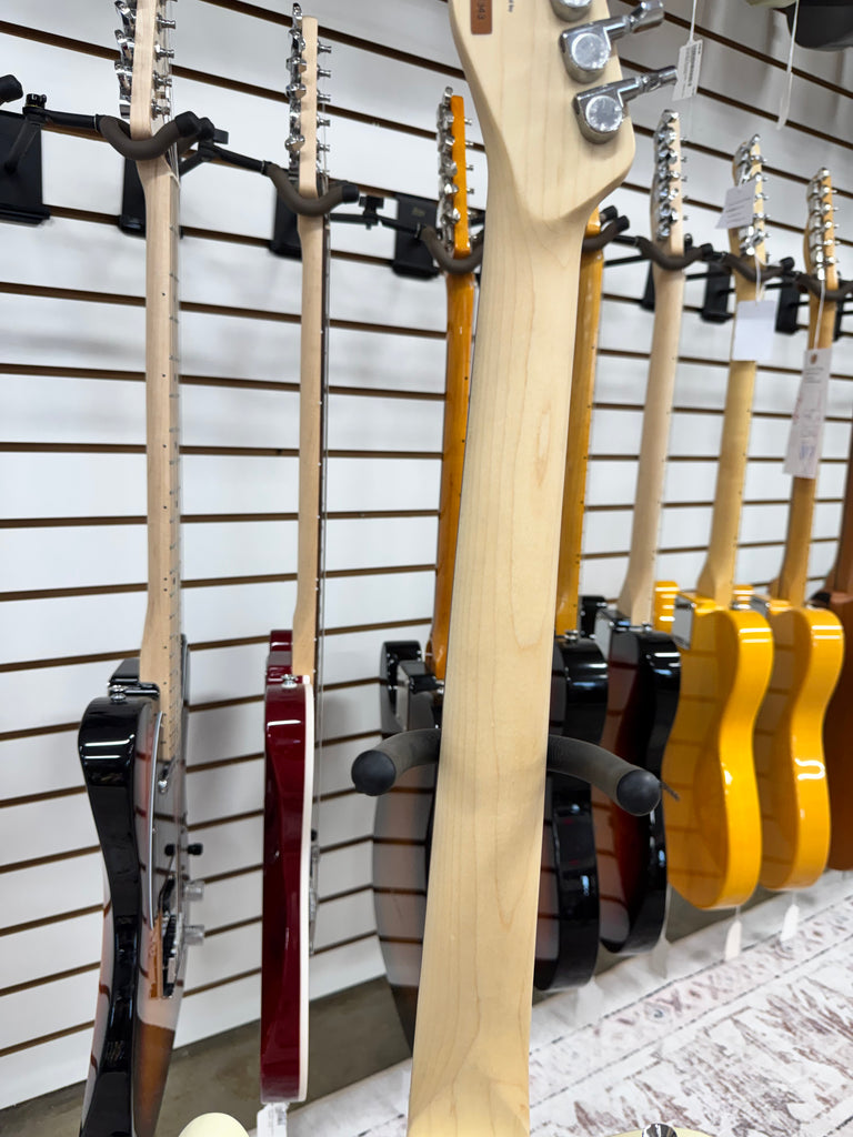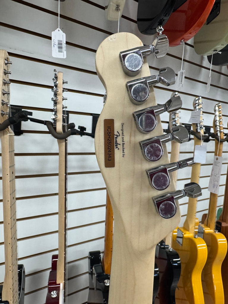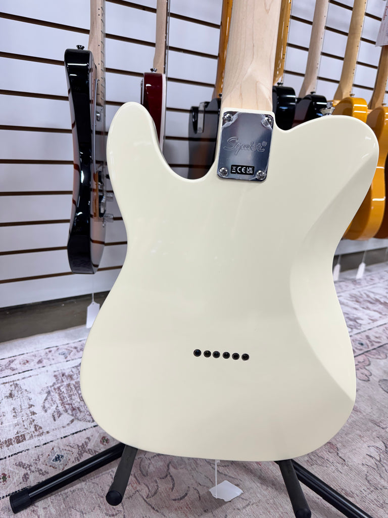 The Squier Affinity Telecaster in Olympic White delivers classic Fender styling and solid playability at an accessible price point. This instrument features a lightweight alder body with a bolt-on maple neck and rosewood fingerboard, providing comfortable access to higher frets. The single-coil pickups produce the bright, articulate tones Telecasters are known for, making it versatile across genres from country to rock. Whether you're a beginner building foundational skills or an experienced player seeking a reliable workhorse, this guitar offers dependable performance and iconic aesthetics without the premium price tag.