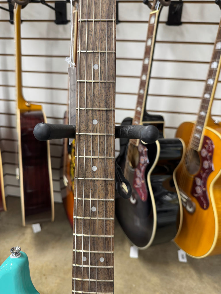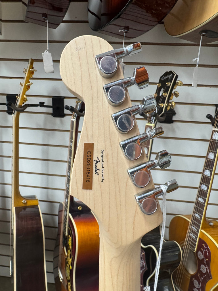 The Squier Limited Edition Sonic Stratocaster in Sea Foam Green offers vintage-inspired tone with modern playability at an accessible price point. Featuring a lightweight body and three Alnico single-coil pickups, it delivers classic Strat clarity and dynamic response. The comfortable C-shaped neck ensures smooth fretting, while its sleek finish and classic styling provide both aesthetic appeal and stage presence. This B Stock model offers exceptional value for players seeking authentic Strat sound and reliable performance.