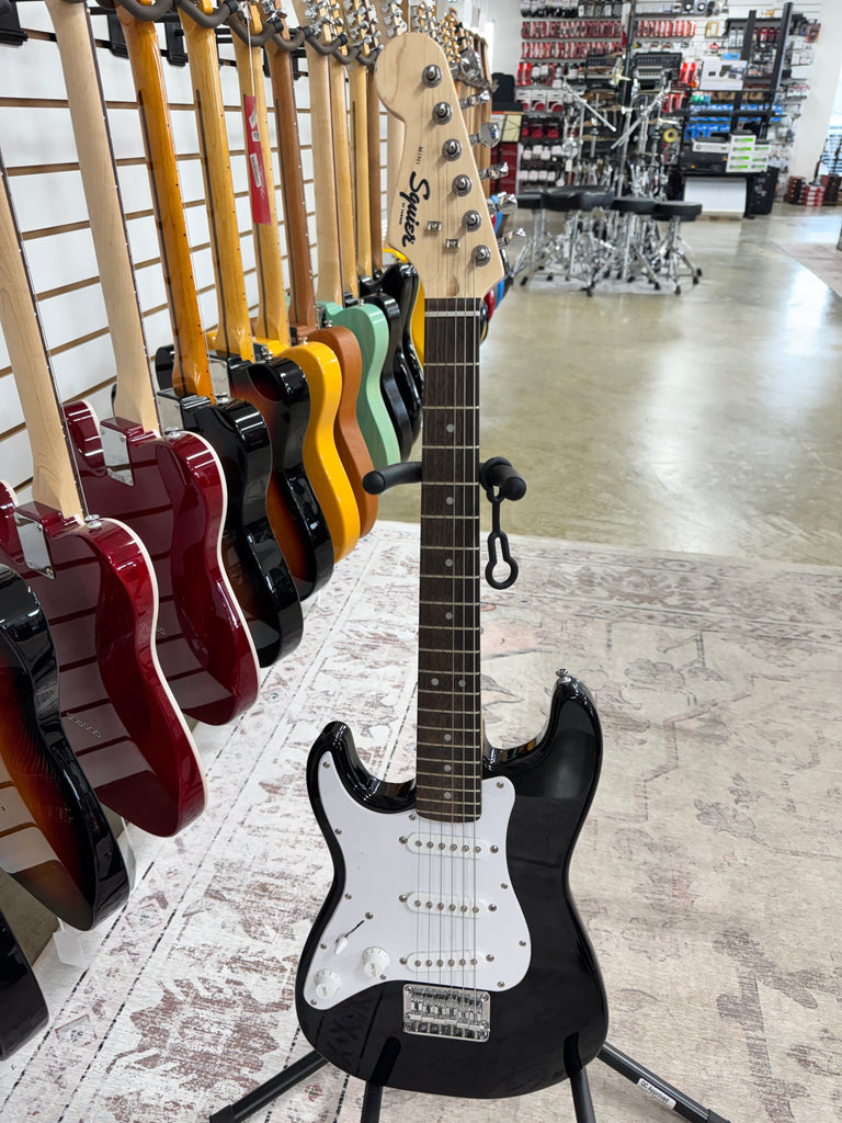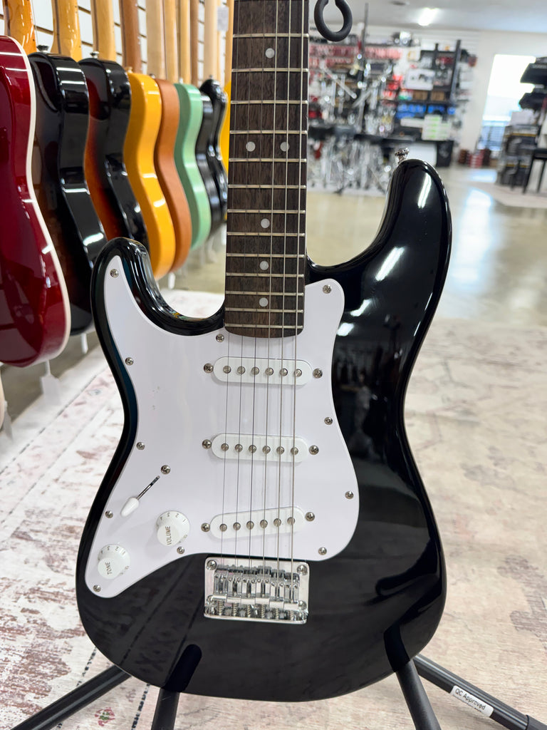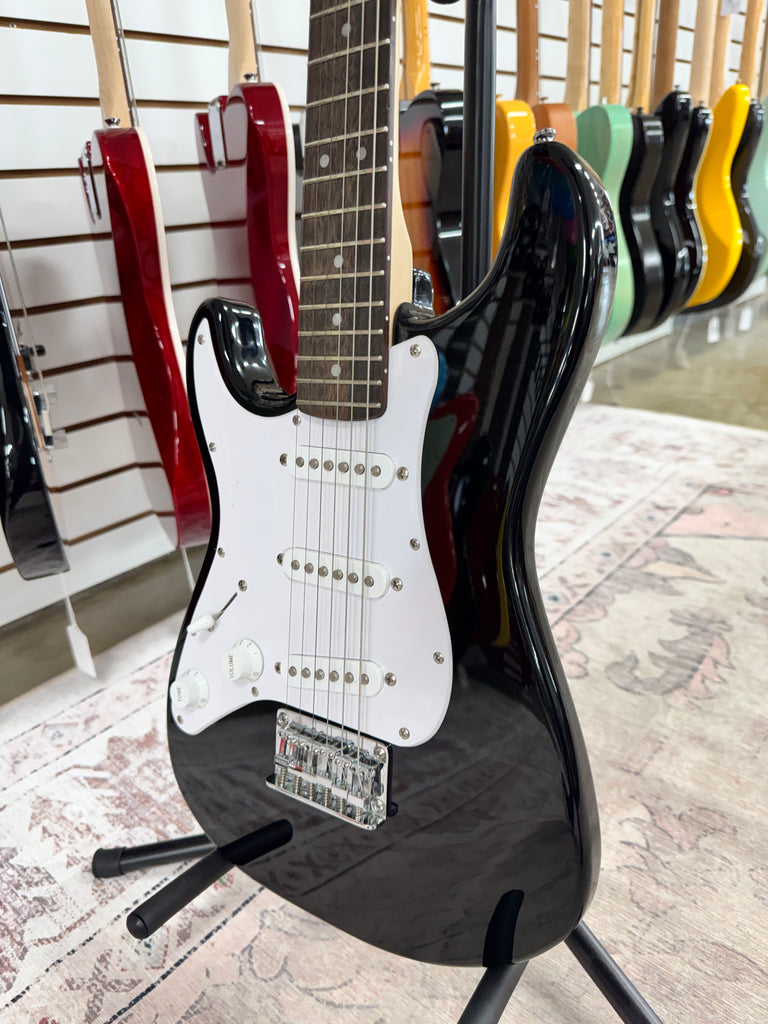 The Squier Mini Stratocaster Left Handed in Black delivers classic Fender design in a compact, left-handed format ideal for younger players or those preferring a smaller body. This instrument features a genuine Stratocaster contour with three single-coil pickups, a synchronized tremolo system, and a comfortable 24-inch scale neck. The solid construction and reliable hardware ensure stable tuning and smooth playability. Perfect for beginners transitioning to electric guitar or experienced players seeking a travel-friendly option without compromising on authentic tone and feel.