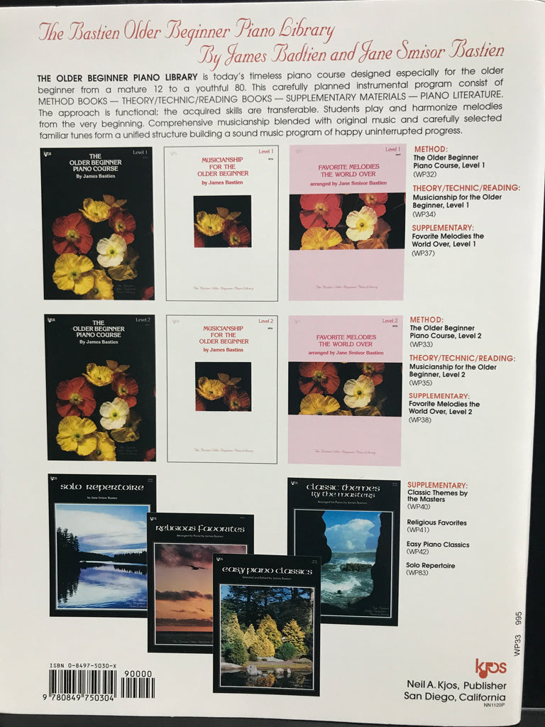 Bastien The Older Beginner Piano Course Level 2 WP33KJOS The Older Beginner Piano Course Level 2 by James BastienThis appealing course of study for beginners age 12 and up is designed functionally, allowing students to play and harmonize melodies from the beginning. A time-tested chord approach method that really works!