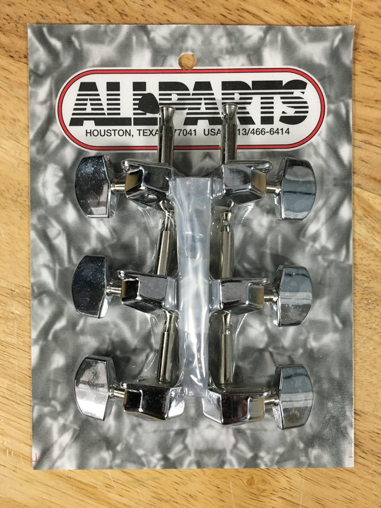 Economy tuning keys, diagonal mounting holes, 3 x 3, Chrome, with hardware, 14:1.